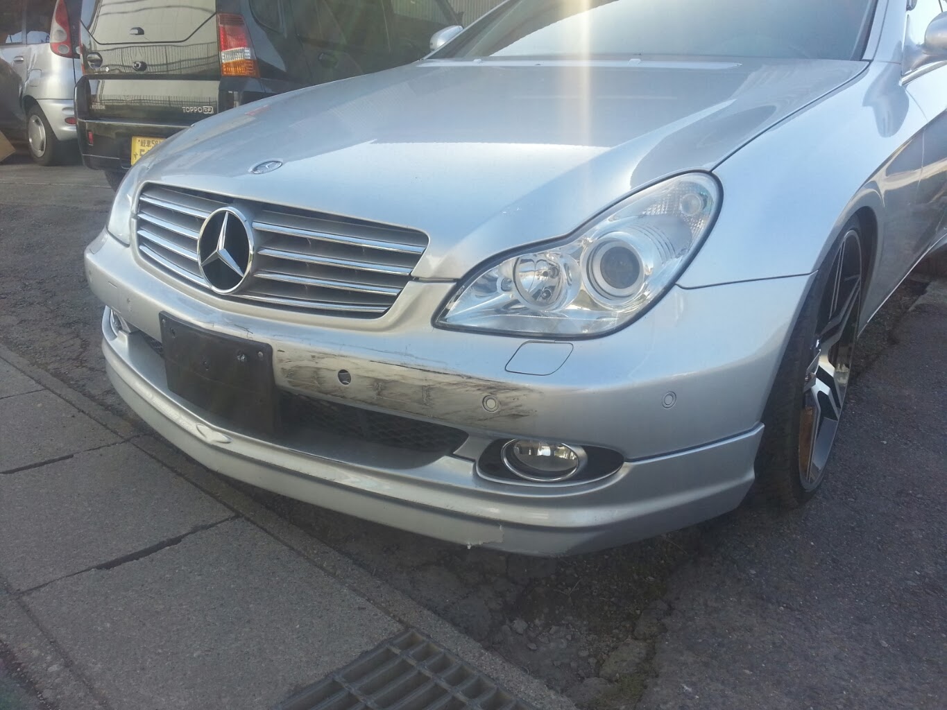 バンパーは割れが酷い所はファイバー樹脂を張ってパテ付けします。